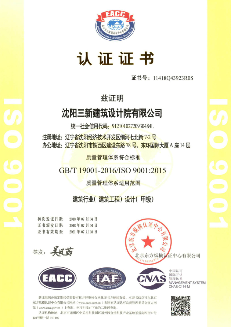2018年6月28日~29日,北京東方縱橫認(rèn)證中心對(duì)沈陽三新建筑設(shè)計(jì)院進(jìn)行質(zhì)量管理體系認(rèn)證審核,經(jīng)過兩天的審核,專家對(duì)公司的管理體系運(yùn)行情況給予好評(píng),滿足標(biāo)準(zhǔn)要求,同時(shí)也給出了切實(shí)的改進(jìn)建議。公司組織各部門對(duì)審核過程中發(fā)現(xiàn)的不符合進(jìn)行了總結(jié)討論,并針對(duì)存在的問題舉一反三,制定并實(shí)施整改計(jì)劃及預(yù)防措施,效果顯著。