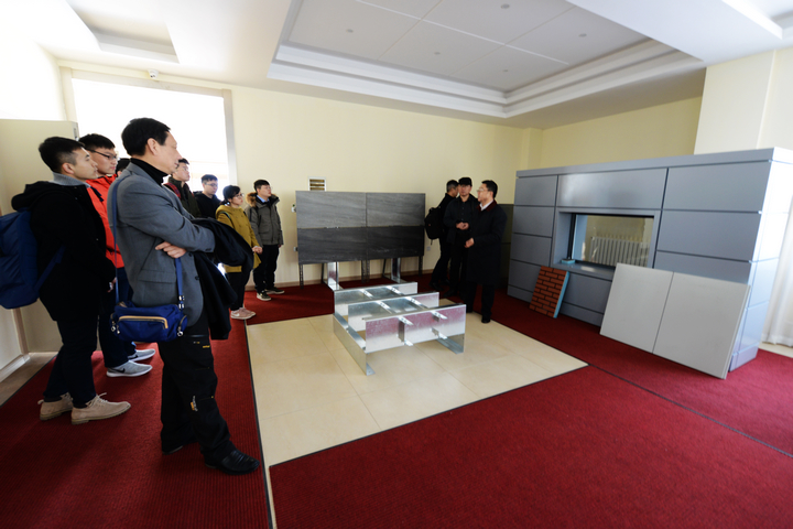 在揭牌儀式前,洪長(zhǎng)禧總經(jīng)理及公司領(lǐng)導(dǎo)首先陪同客人參觀了公司生產(chǎn)基地及產(chǎn)品展廳,師生們對(duì)我公司先進(jìn)的裝備及產(chǎn)品贊不絕口,尤其是裝配式建筑展品給師生們留下深刻的印象。