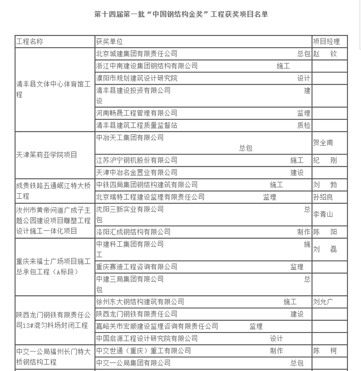 會上,經(jīng)過由23位資深鋼結構專家專家組成的評審委員會嚴格遵循公平、公正、公開的原則,對各項申報工程進行細致而周密的綜合評議和投票,最終產(chǎn)生了第十四屆第一批(2019年度)中國鋼結構金獎工程。 我公司黃帝問道大型城雕項目名列其中,并將在2021年全國建筑鋼結構行業(yè)大會一起進行表彰。