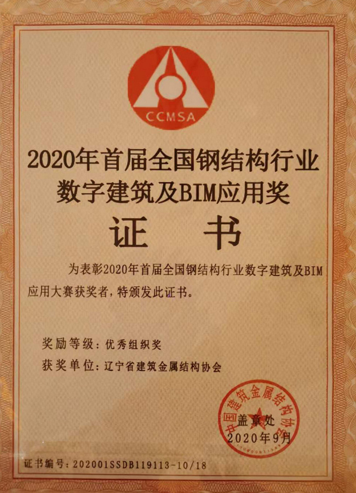 大會對2019年度行業(yè)貢獻(xiàn)突出企業(yè)進(jìn)行了表彰。我公司獲頒“金屬屋墻面行業(yè)競爭力前十名企業(yè)”、“2019年度建筑鋼結(jié)構(gòu)行業(yè)50強(qiáng)企業(yè)”、“中國建筑鋼結(jié)構(gòu)行業(yè)2019年度誠信企業(yè)”稱號。公司BIM 團(tuán)隊(duì)榮獲“2020年度首屆全國鋼結(jié)構(gòu)行業(yè)數(shù)字建筑及BIM應(yīng)用大賽優(yōu)秀獎”,李青山榮獲“2019年度全國鋼結(jié)構(gòu)工程優(yōu)秀建造師”,張毅在“集成房屋行業(yè)抗疫感人事跡”公益活動中表現(xiàn)突出,被評為“最美逆行者”。