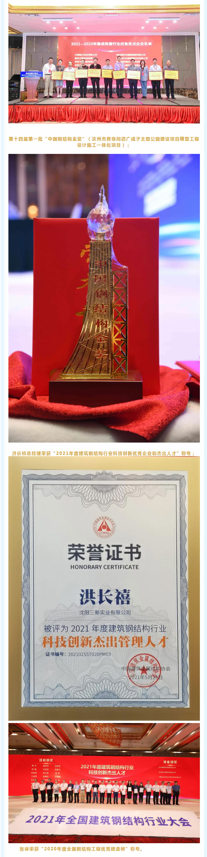 綠色引領,再創(chuàng)輝煌——三新集團參加“2021年全國建筑鋼結構行業(yè)大會”載譽歸來