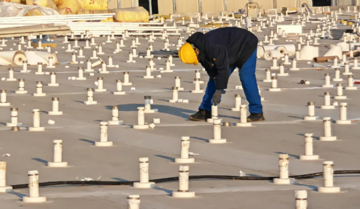 東北的冬季是最大考驗。三新專項技術(shù)組優(yōu)化圍護工藝,攻克低溫TPO 焊接難題;排水天溝內(nèi)置精準(zhǔn)電伴熱系統(tǒng),杜絕凍堵風(fēng)險;光伏支架立桿采用高分子包封件,實現(xiàn)防水與發(fā)電的無縫銜接。當(dāng)抗風(fēng)揭試驗室的模擬狂風(fēng)掠過屋面,這頂 “鳳冠” 用數(shù)據(jù)證明:它不僅是建筑的外衣,更是自然的摯友。