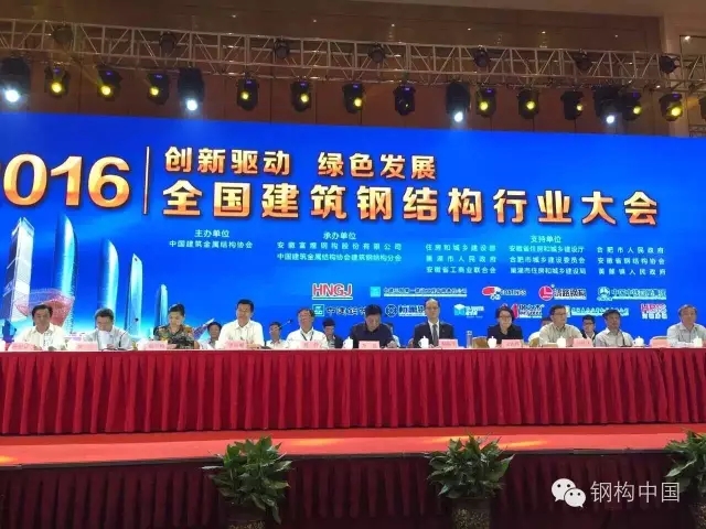 2016年全國建筑鋼結(jié)構(gòu)行業(yè)大會(以下簡稱“大會”)于5月14日在安徽合肥隆重召開。本次大會由中國建筑金屬結(jié)構(gòu)協(xié)會主辦,中國建筑金屬結(jié)構(gòu)協(xié)會建筑鋼結(jié)構(gòu)分會與安徽富煌鋼構(gòu)有限公司共同承辦,大會主題是“創(chuàng)新驅(qū)動、綠色發(fā)展”。本次大會得到了住房和城鄉(xiāng)建設部、及安徽省有關單位的大力支持。同時吸引了來自全國各地鋼鋼結(jié)構(gòu)企業(yè)家、專家代表700余人參與本次大會。大會每年召開一屆,現(xiàn)已成為建筑鋼結(jié)構(gòu)領域影響最廣、規(guī)模最大的行業(yè)盛會,被業(yè)內(nèi)人士譽為“建筑鋼結(jié)構(gòu)領域中的奧林匹克”。其宗旨在于把握行業(yè)發(fā)展趨勢,傳達落實行業(yè)相關產(chǎn)業(yè)政策,搭建學術交流平臺和行業(yè)產(chǎn)業(yè)鏈上下游企業(yè)對接平臺。