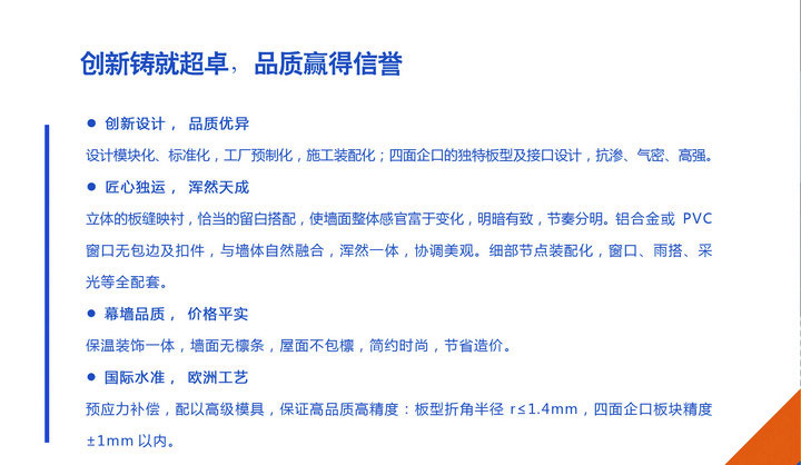 • 三新——綠色建筑領(lǐng)航者。新技術(shù),新工藝,新材料,時(shí)尚,環(huán)保,快捷